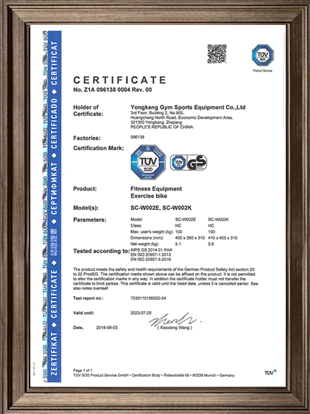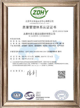 公司遵循GB/T 19001-2016/ISO 9001:2015《质量管理体系 要求》,特别设立产品测试中心,成品质量严格把关,实现标准化品质管理。产品相继获得GS认证、ROHS认证及通过EN957测试。